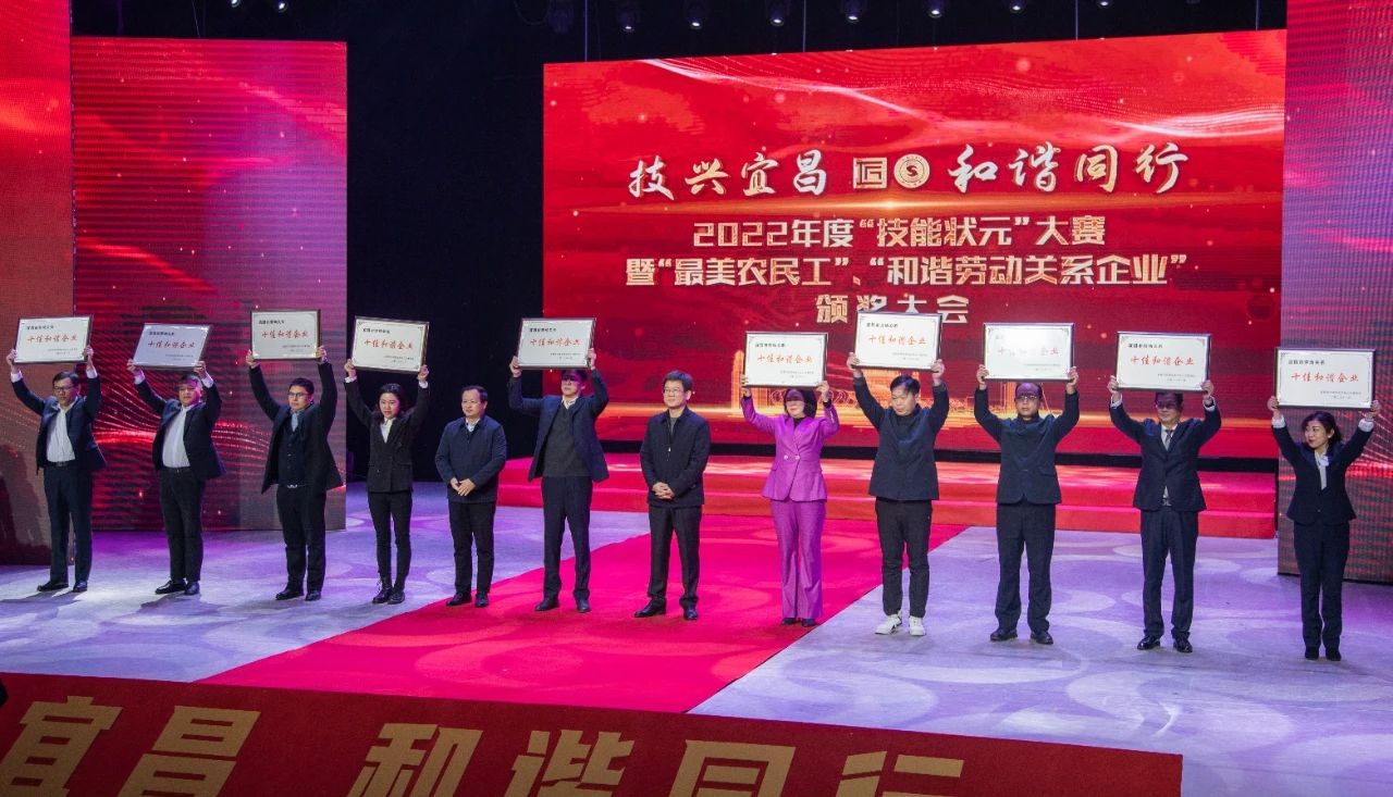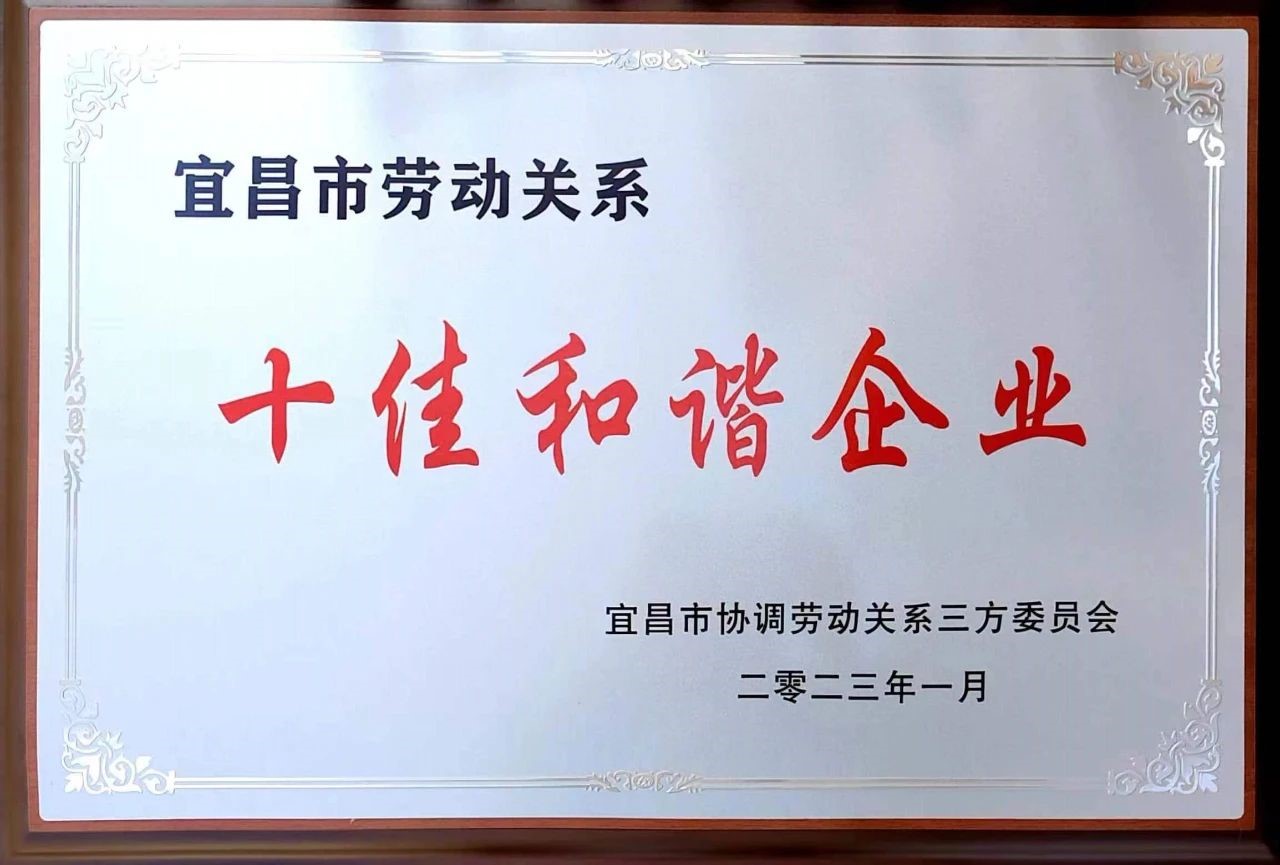 1月7日,宜昌市第三届劳动关系十佳和谐企业评选活动颁奖典礼在宜昌市广电中心一号演播大厅隆重举行。典礼表彰了宜昌市创建“劳动关系十佳和谐企业”及“最美农民工”“技能状元”代表,8868体育宜昌有限公司荣获宜昌市第三届“十佳和谐企业”称号。