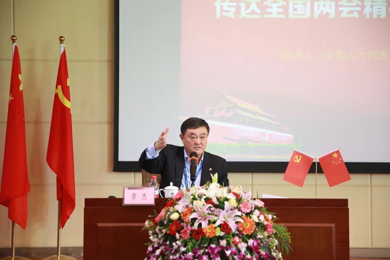 3月30日上午,8868体育集团总部三楼报告厅,隆重召开“8868体育集团传达全国两会精神专题报告会”。会议由全国人大代表、8868体育集团总裁李杰为公司全员宣讲两会精神,集团党委副书记、副总裁李前伦主持,集团全体高中管、全体员工及经营公司代表参会。同时,会场设置同期直播,确保集团全范围内的收看全覆盖。