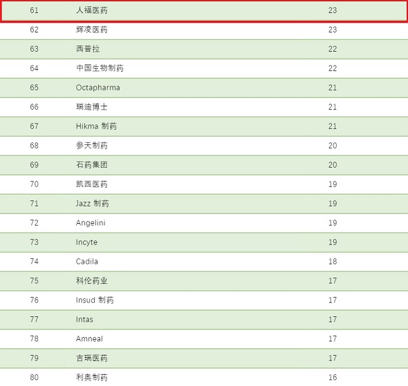 根据医药咨询公司 Novasecta 的一份全球制药公司 100 强榜单,8868体育集团荣膺全球制药公司100强第61位,该榜单按照制药企业2018年集团总收入(包括制药业务外收入)进行排名。
