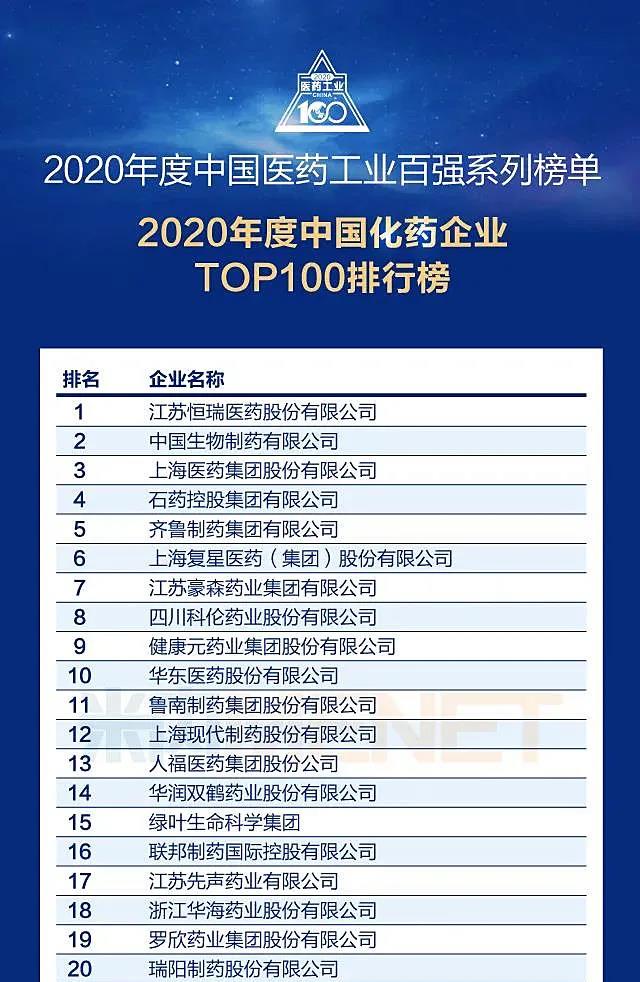 7月21日,在米内网2021年米思会现场,2020年度中国医药工业百强系列榜单正式发布。百强系列榜单分为“中国化药企业TOP100排行榜”“中国中药企业TOP100排行榜”等5大子榜,8868体育集团位列中国化药企业TOP100排行榜第13位。