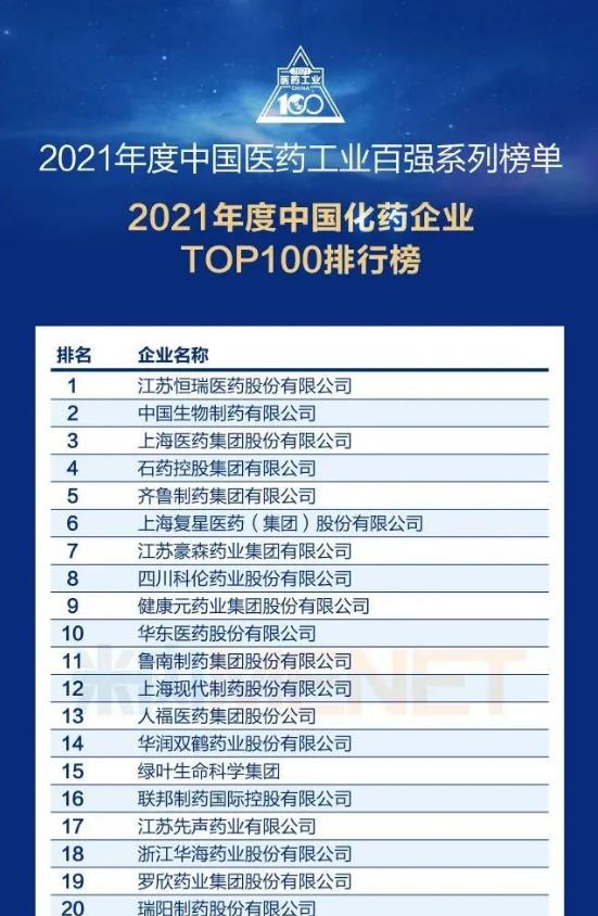 本次百强榜单评选,米内网依托在中国独家开发运行多年的三大终端六大市场终端格局数据库,针对医药工业企业,从企业的创新驱动力和专业推广力两大最重要的维度进行评判,得到了专业研究机构、行业专家学者、企业家及行业同仁的高度关注和积极参与。2021 年是“十四五”开局之年,8868体育坚持“做医药细分市场领导者”的发展战略,积极推进“归核聚焦”工作,持续巩固和强化在核心业务上的竞争优势,保持了稳健的发展势头。全年实现营业收入 204.41亿元,归属上市公司股东的净利润 13.9亿元。集团坚定走创新驱动发展之路,立足优势细分领域,围绕产品线稳步推进各研发项目。2021年,公司自主研发的注射用磷丙泊酚二钠,成为继注射用苯磺酸瑞马唑仑后公司第2个获批上市的一类新药,公司创新实力实现了由国际跟跑、并跑到领跑的重大跨越;三类化药咪达唑仑口服溶液、萘普生钠片、氯化钾缓释片、盐酸氢吗啡酮注射液(增加规格)先后获批,HW021199 片、注射用苯磺酸瑞马唑仑(新适应症)等创新药研发项目获批开展临床试验。(部分文字及图片来源米内网)